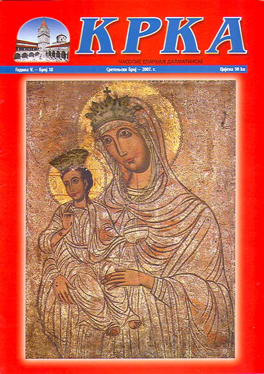 ČASOPIS EPARHIJE DALMATINSKE "KRKA" br. 18 SADRŽAJ: Beseda na Sretenje Gospodnje; Konferencija u Bonu 1875. godine; O Srbima i srpskoj pobožnosti; Manastir Krupa; Jovan Bovan – osnivač Srpske škole u Šibeniku; Doseljavanje Srba u Sjevernu Dalmaciju; Pouke starca PorfirijaŠiroki i uski put; Duhovni i kulturni genocid; na Bribiru u Eparhiji dalmatinskoj; Pismo Patrijarha srpskog g. Pavla Boži Biškupiću ministru kulture vlade Republike Hrvatske; Vijesti iz Eparhije; Priložnici.