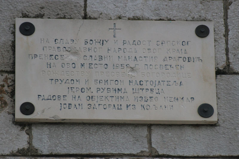 SUMMARY MONASTERY DRAGOVIĆ Monastery Dragović is situated on a hill downstream the Cetina River not far from the place called Vrlika. The present monastery building is the third one placed on the third locality. The Serbs from Bosnia, who ran away from Turks to the territory of the Cetinska krajina, erected the first monastery building in 1395. In 1777, hieromonk from monastery Dragović, Vikentije (Stojisavljević) began to build the new monastery in the place called Vinogradi. The building was continued in 1846, during the period of prior Jerotej Kovačević and was completed as well as consecrated in 1867. In 1959, when the artifical lake for the hydroelectric power station Peruča had been made, monastery Dragović was moved on a hill not far from the old fortress called Gradina. Monastery Dragović was often ruined by Turks. In its long history, they ruined and robbed the monastery six times up to the year 1699. In 1585, five monks from this monastery ran away to Hungary where they founded monastery Grabovac. In 1619, ten monks from monastery Dragović joined their brother monk in monastery Grabovac. After all these events, monastery Dragović had been deserted for more than 70 years and Bishop Nikodim (Busović) renewed it in 1694. Monastery Dragović used to have a rich treasury, in which was kept a number of manuscripts from 16th-18th centuries, as well as very old books written in Greek, Latin, Italian, Russian, and Serbian. There were also very rare antimens, among which was one made by H. Zefarović dating from 1752. A great number of sacral objects mainly made in silver granulation and filigree from 18th century were also a part of this rich treasury. In the monastery’s church, a part of Saint Gregory’s relics was kept - Saint Gregory was a Serbian enlighter and Archibishop who was a descendant of Saint Nemanjić family. In the last decade of the 20th century, the time when Serbs went through new great sufferings, monastery Dragović was devastated and ruined again. Being aware of the great significance this sanctuary has for the Orthodox Serbs, His Grace Bishop Fotije of Dalmatia gives a blessing to priest Đorđe Knežević to start with the reconstruction of this monastery. In autumn 2004, basic conditions have been achieved for the return of monks. Thus with the decree of Bishop Fotije, on the 15th of September 2004 monastery Dragović gets a new brotherhood, and hieromonk Varsonufije (Rašković) has been appointed their Father Superior. On the same day due to the feast of the Nativity of the Theotokos, the first Holy Hierarchal Liturgy was served in the reconstructed monastery’s church. On that occasion, a great number of pilgrims visited this holy place and in his sermon Bishop Fotije emphasized how grand importance this monastery has for Orthodox Serbs of the Cetinska Krajina. He also pointed out that the reconstruction of monastery Dragović is a great blessing of the Holy Trinity and Most Venerable Mother of God. In this way, the tradition of gathering of Orthodox Serbs in this monastery has been established again. This assembly occurs every year on Sunday before the feast of the Nativity of the Theotokos. ::..::